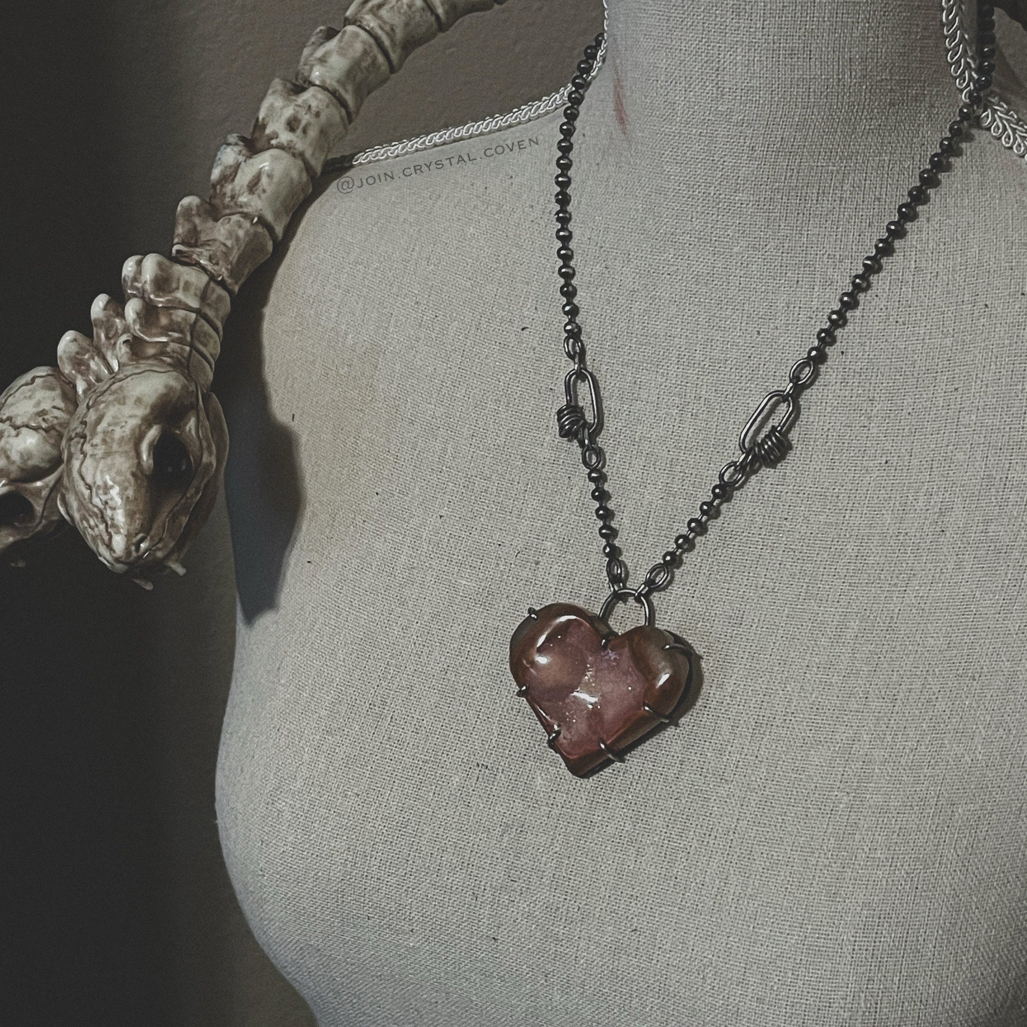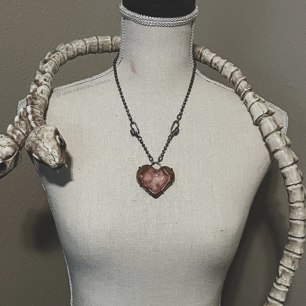 The Druzy Carnelian Heart of the Witch Talisman features a very unique stone with a hand forged sterling silver setting, partially hand forged chain and hand forged clasp and findings. Layers and layers of intention have been worked into this talisman.