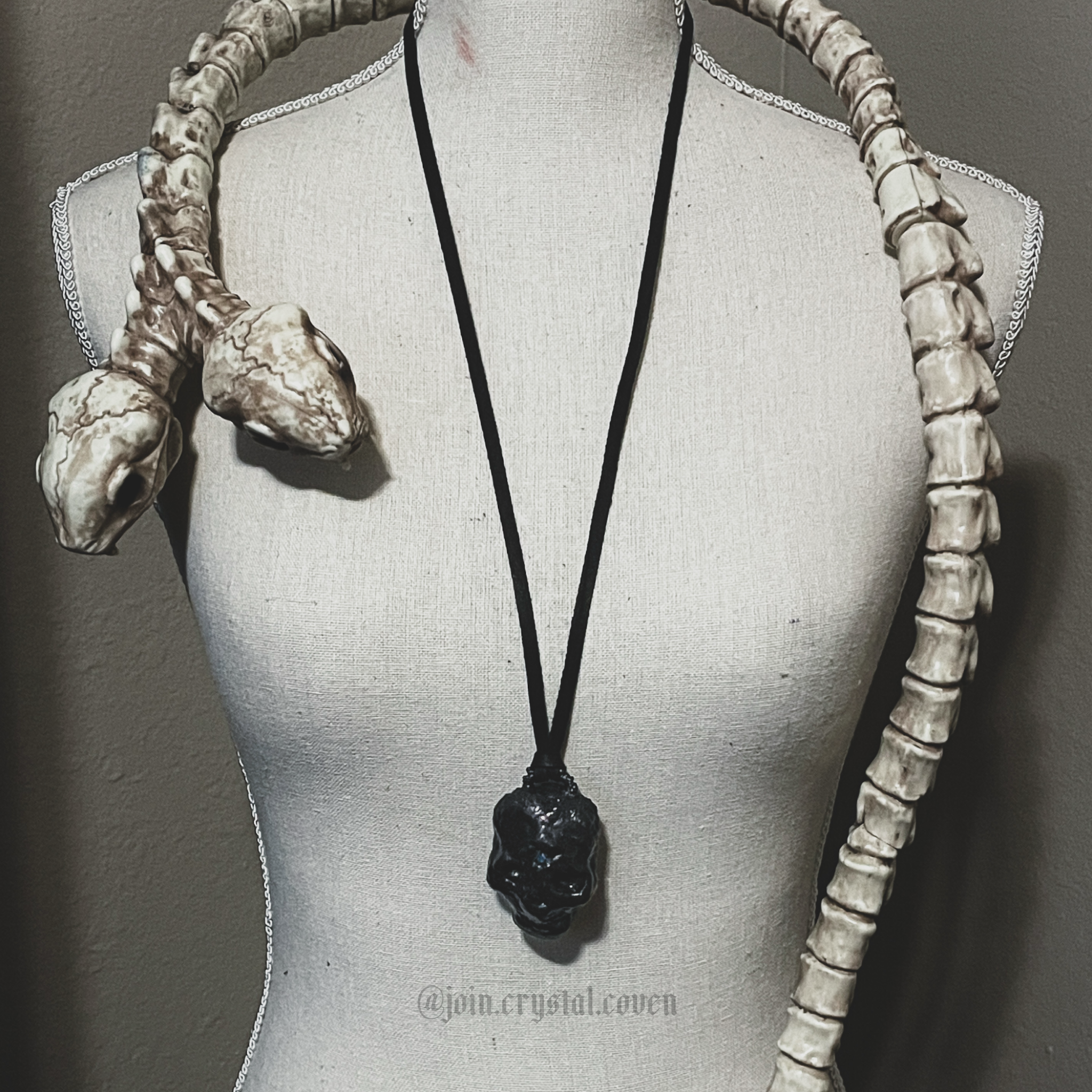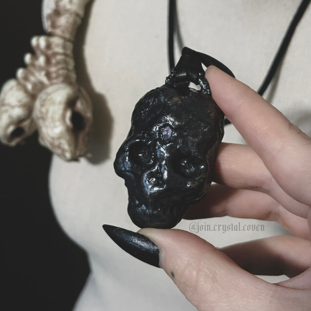 The Pink Amethyst Skull Talisman reminds us that we are inextricably a part of nature and this earth. Bound together and reintegrated in death. Cherish the moments above the ground and seek solace in this connection.
